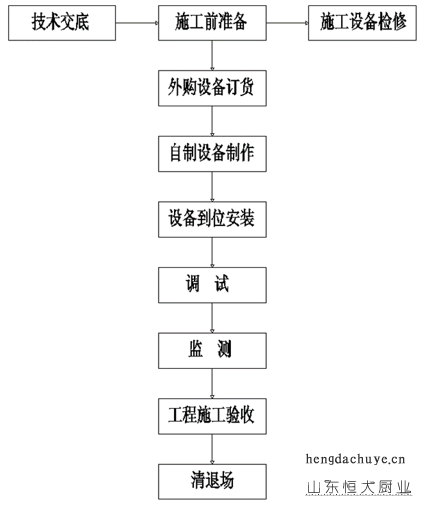 現(xiàn)場(chǎng)施工安裝由施工負(fù)責(zé)人、設(shè)備安裝部組成,負(fù)責(zé)按施工圖紙進(jìn)行施工。